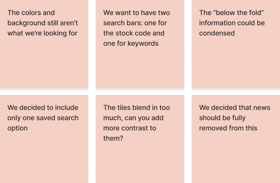 At this point in the project, we were on our final iteration and it didn't seem like we were reaching a consensus on the visual design. My partner and I decided to try and have everyone "zoom out" on the project scope - the main goals of this redesign were to fix the filters, loading times, and to help users find what they needed quickly. Because of this, we worked with the dev team to make it a modular application so that features and styles could be easily swapped out for future iterations.